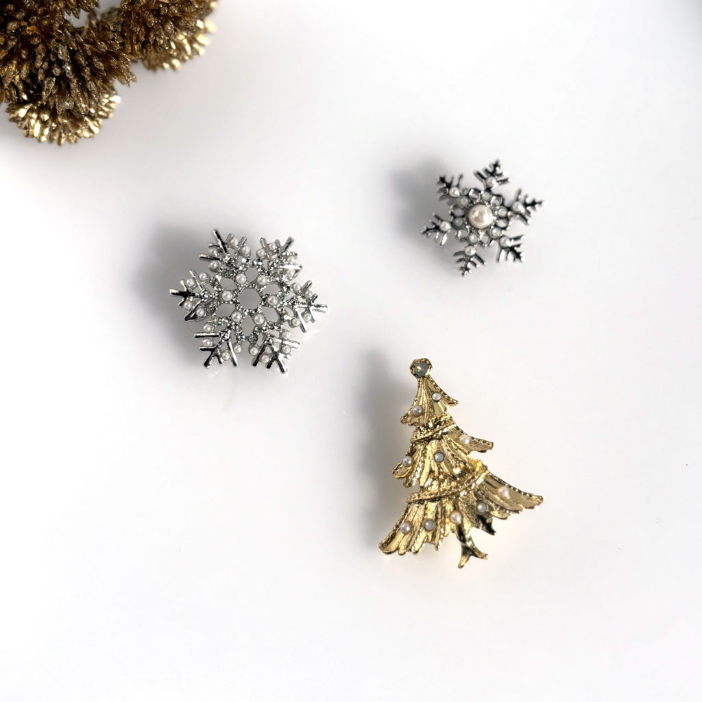冬の訪れを告げる雪の結晶やツリーのクリスマス限定ブローチ、